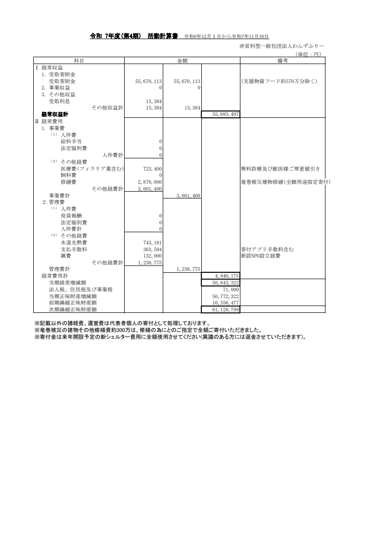 第4期活動計算書のご報告